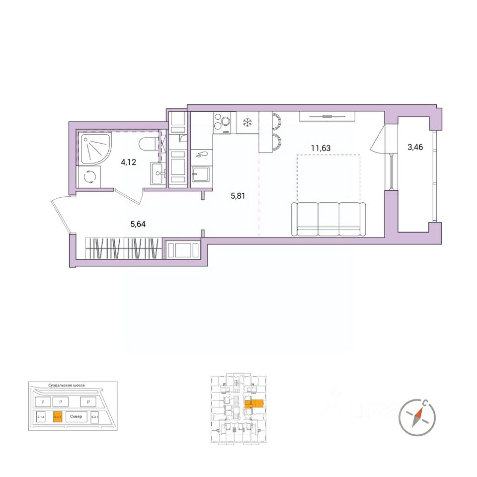 11,6 м²