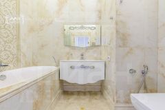 Планировка квартиры включает в себя 3 спальные комнаты, просторную гостиную, где у камина приятно можно скоротать время всей семьей и кухню-столовую, две вместительные ванные комнаты: одна из которых площадью более 10 квадратных метров с окном выходящим в тихий двор, а вторая расположена в родительской спальне, а также множество помещений для хранения и гардеробные комнаты.