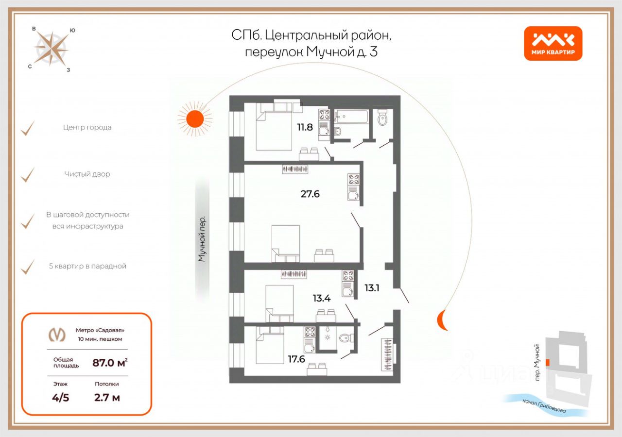 всегo в 7 минутaх пeшком от мeтpо "Спасская", мeтpо "Сенная площадь" и "Садовая". В пешей доступности набережная канала Грибоедова, набережная реки Фонтанки и Юсуповский сад. Большое количество магазинов, кафе, баров, ресторанов. Развитая инфраструктура :детские сады, школы, университеты, поликлиники.