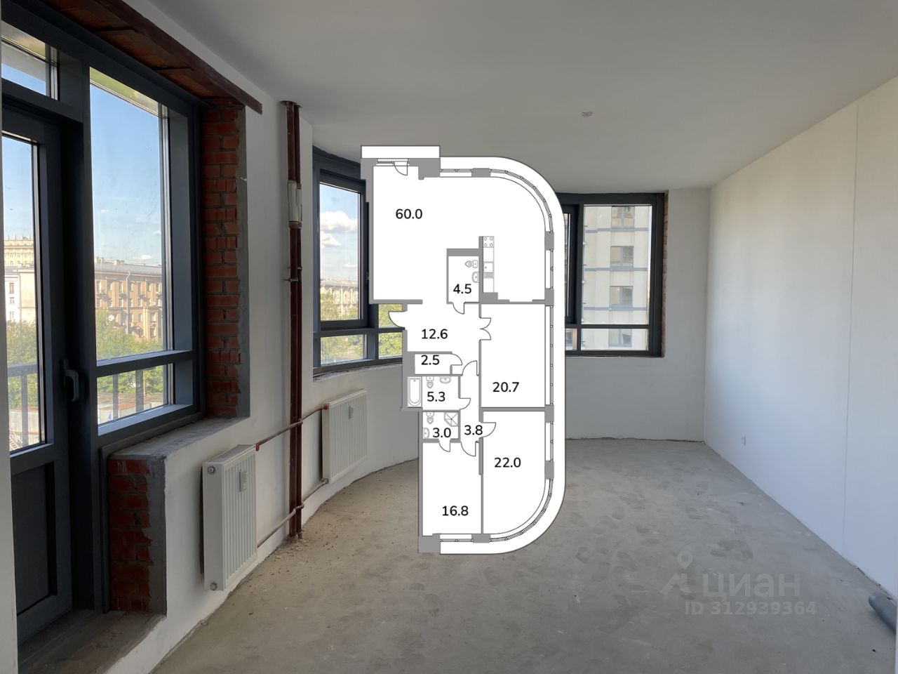 Квартира с белой (предчистовой) отделкой, поэтому возможны любые дизайнерские решения и перепланировки. Так же в квартире широкие окна во всю стену, что дает много света и объема.