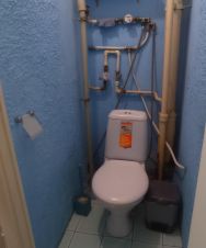 В ванной требуется косметический ремонт - (чугунная ванна, было сделано акриловое покрытие 3 года назад, треснуло, нужно восстановить). Унитаз в туалете новый, стены окрашены.