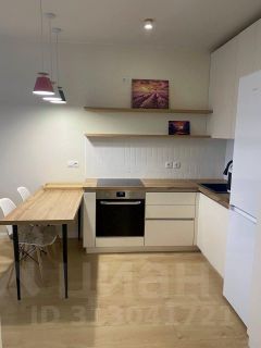 Просторная кухня-гостиная — идеальное место для встреч с семьей и друзьями. Здесь установлен стильный кухонный гарнитур и встроенная техника (духовой шкаф, варочная панель).