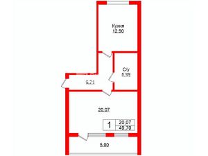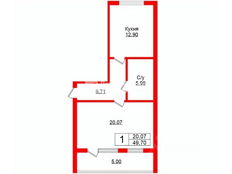 Уникальной планировки (из большой комнаты 20.1 м.кв. с двумя окнами можно сделать две изолированные спальни) кухня 12.9 м.кв., большая застекленная лоджия 5 м.кв