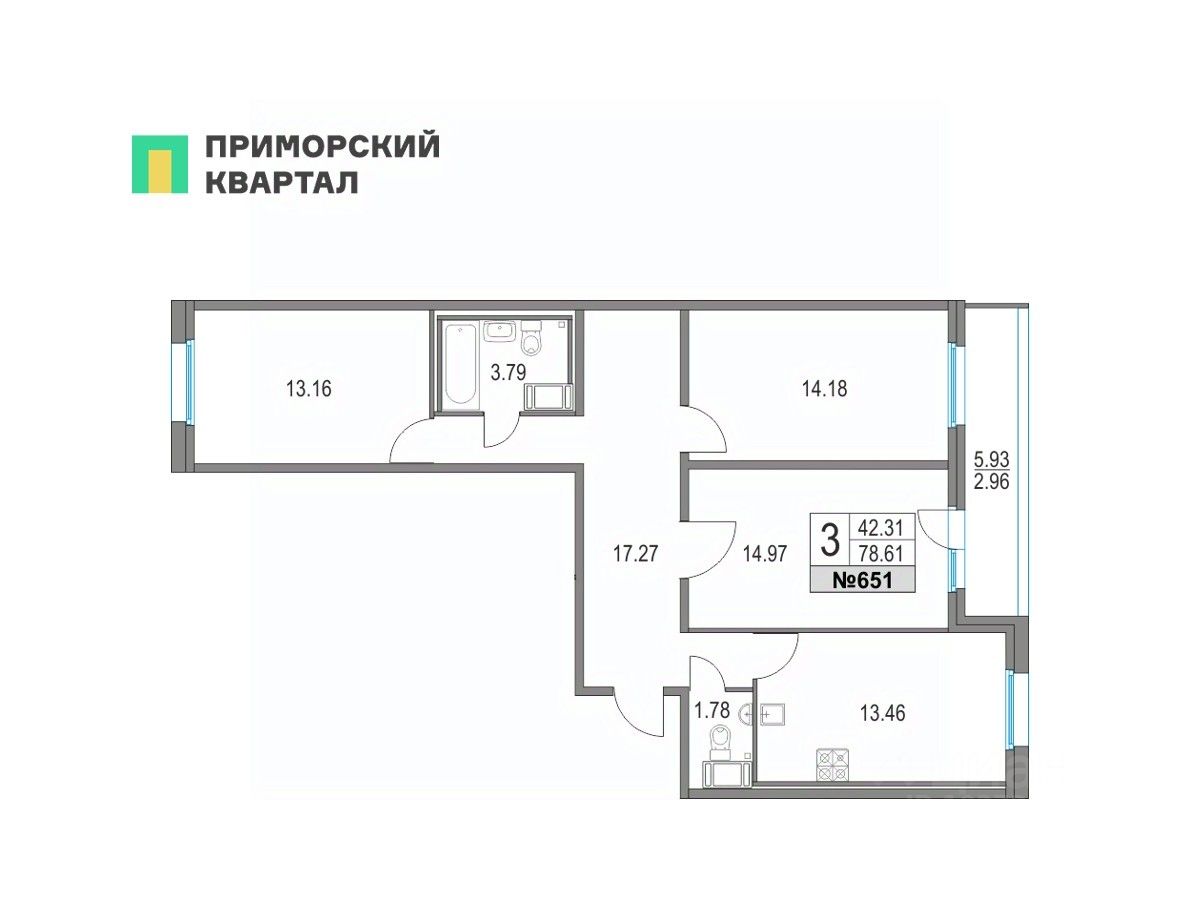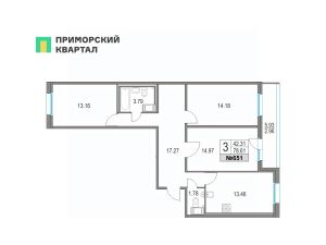 Продается 3 - комнатная квартира общей площадью 78.61 кв.м., на 19 этаже в построенном и заселенном корпусе 31 (год сдачи: 2022 г.)