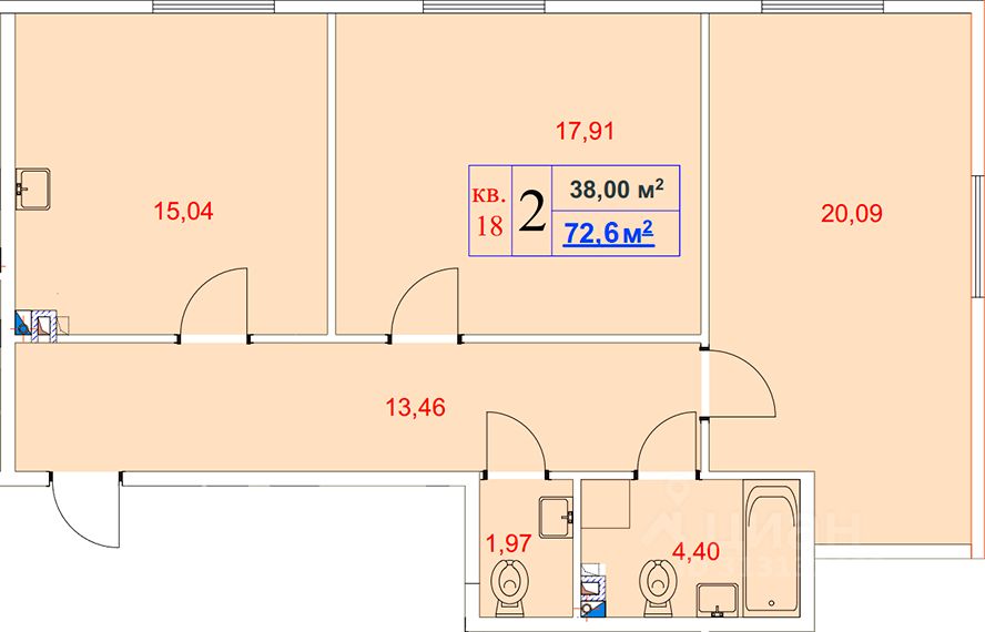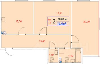 Продается просторная 2-х комнатная квартира 72,6 кв.м. с отделкой в новом трехэтажном доме в 500 метрах от Приоратского парка на ул. Чкалова.