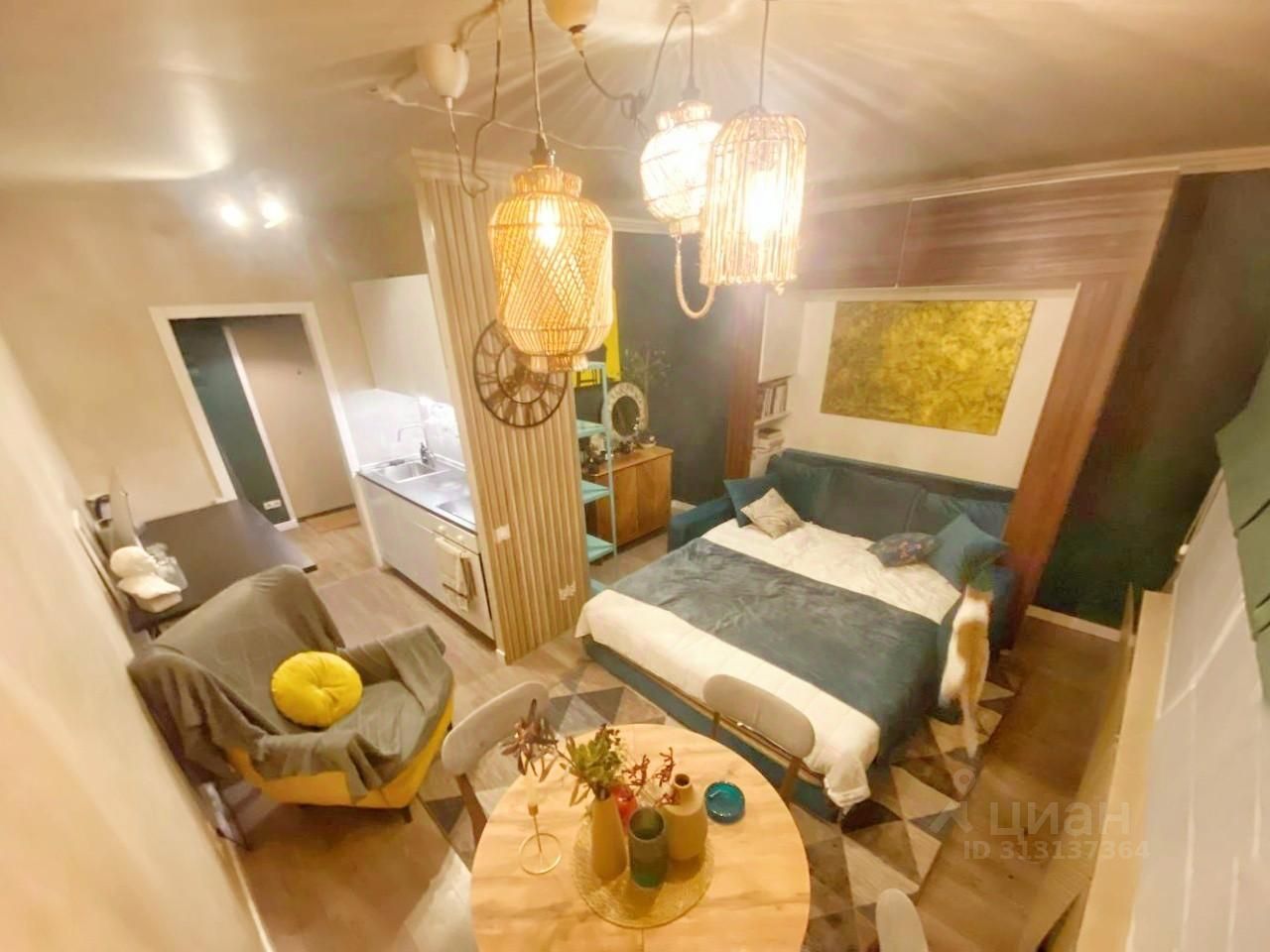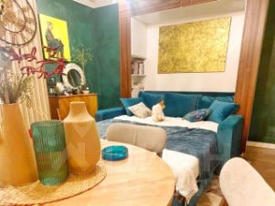 Интерьер выполнен в современном дизайнерском стиле, что придает уют и комфорт. Студия обставлена новой мебелью и современной техникой, поэтому можно сразу заехать и жить. Санузел совмещенный, оформлен с учетом последних тенденций. Окна выходят во двор, поэтому в квартире тихо и спокойно.