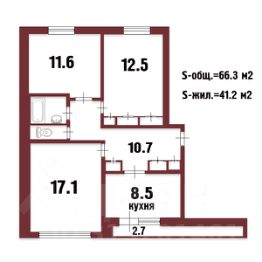 Прекрасная квартира, изолированные комнаты 17,1 кв.м. + 11,6 кв.м.+12,5 кв.м. расположены по разным сторонам квартиры, между комнатами небольшой коридор с раздельным санузлом и прихожая-холл - 10,7 кв.м., кухня - 8,5 кв.м. плюс застекленная двойная лоджия.
