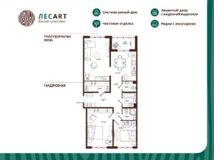 Продаётся 3-комнатная квартира 123, общей площадью 91.6 кв.м., на 12. Дом комфорт-класса, 12 этажей, в окружении леса и малоэтажной застройки. Проект с умным домом. Передача квартир в феврале 2025г.