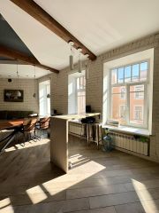 Квартира в отличном состоянии с качественным ремонтом и интерьером в современном стиле, очень светлая, солнечная, с высокими потолками, парадный вход, окна в тихий двор и на не шумную улицу с видом на Матвеевский сад, где раньше стоял Храм св. апостола Матфия, в котором прихожанкой была блаженная Ксения.