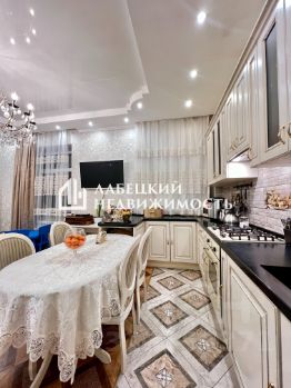 ВМЕСТИТЕЛЬНАЯ кухня-гостиная площадью 20,7м² правильной прямоугольной формы. На полу выложена инженерная доска и КЕРАМОГРАНИТ. В кухне ДИЗАЙНЕРСКИЙ кухонный гарнитур со встроенной бытовой техникой выполненный на заказ. Имеются электрические ТЕПЛЫЕ ПОЛЫ.