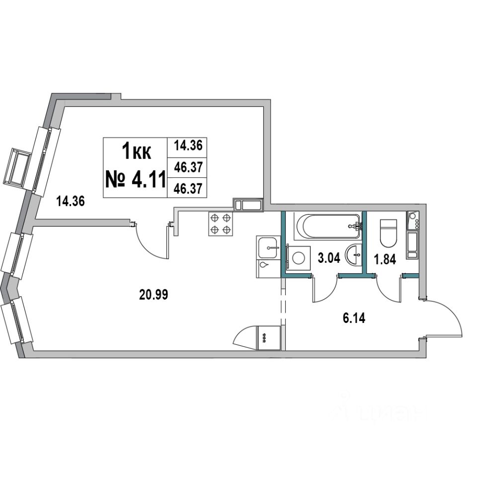 Продаётся 1-комнатная квартира в строящемся доме (Дом 1), срок сдачи: IV-кв. 2025, общей площадью 46.37 кв.м., на 4 этаже. Новый жилой дом от застройщика "Унистрой" расположен по адресу Ленинградская область, Выборг, 2-я Южная улица.