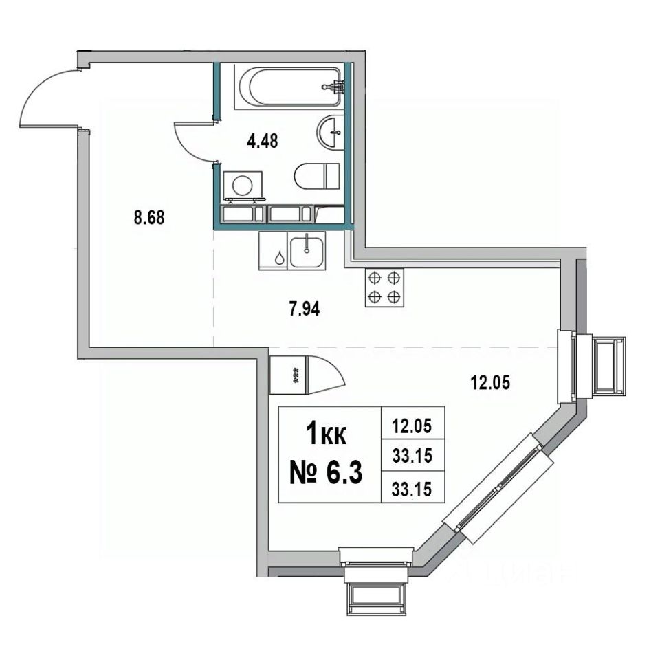 Общая площадь33,15 м²