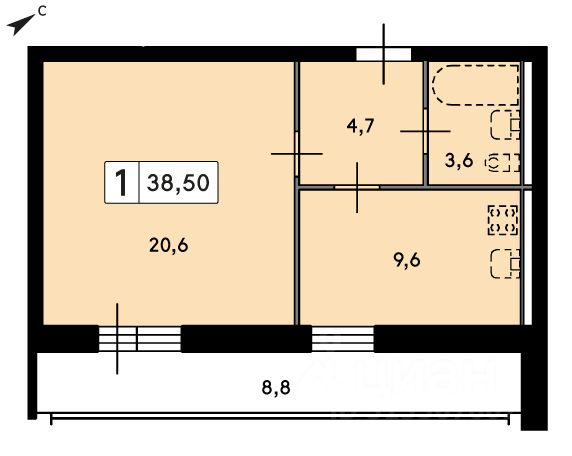 Жилая площадь составляет 20.6 квадратных метров, что позволяет разместить всю необходимую мебель и создать уютную атмосферу. В квартире выполнен косметический ремонт, благодаря чему она готова к заселению без дополнительных вложений. Санузел совмещённый, что является практичным решением для однокомнатной квартиры.