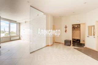 - Простор и свет: кухня-гостиная площадью 70 квадратных метров с потрясающим панорамным видом на вантовый мост и Финский залив.