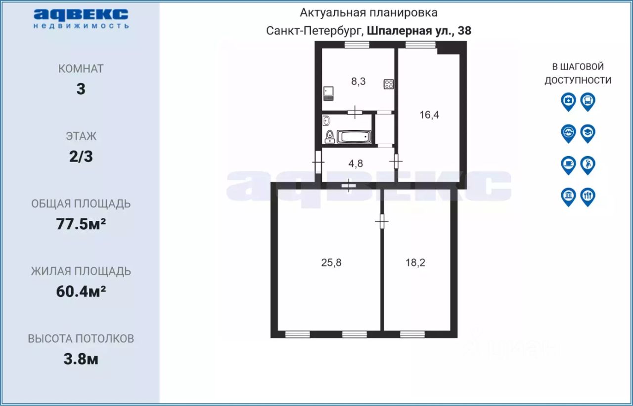 Две квартиры на этаже, в парадную два входа -один парадный, второй со двора-в нем всегда есть место для парковки, окна на две стороны -на пр.Чернышевского и во двор. Дом кирпичный- теплый, прекрасная звукоизоляция, зеленый двор, чистая парадная.