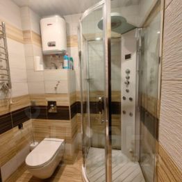 Общая площадь квартиры 72 кв.м., комнаты изолированные 18 кв.м. (с выходом на застекленную лоджию ) и 17 кв.м., кухня 17 кв.м., просторный с/у с душевой кабиной, гардеробная. Высота потолка 2,77 м.