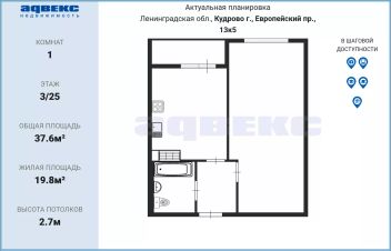 Транспортная доступность: до станции метро "улица Дыбенко" 25 минут пешком, на транспорте дорога займёт около 20-ти минут.. Выезд на КАД находится в непосредственной близости, рядом с крупным торговым центром МЕГА Дыбенко.