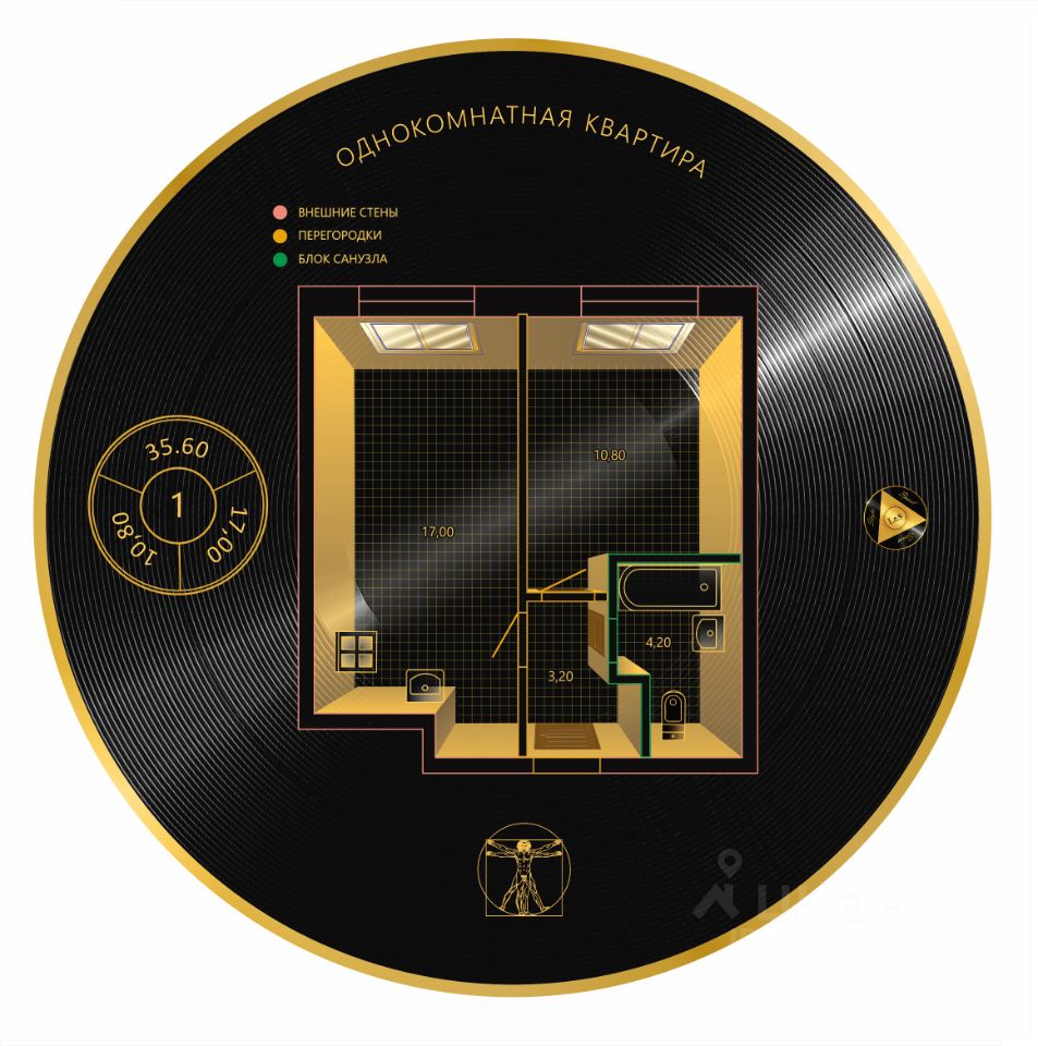 - Метраж 35.6 м2