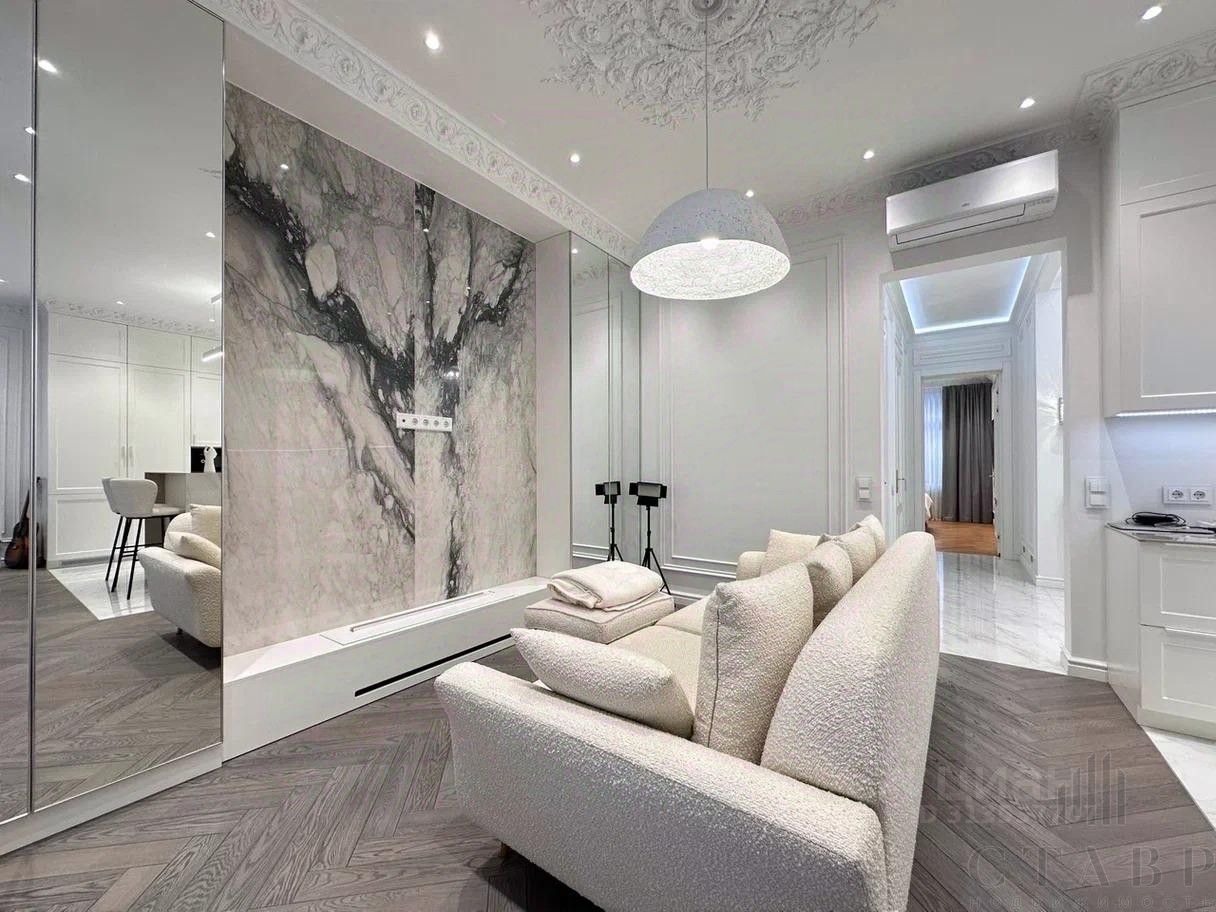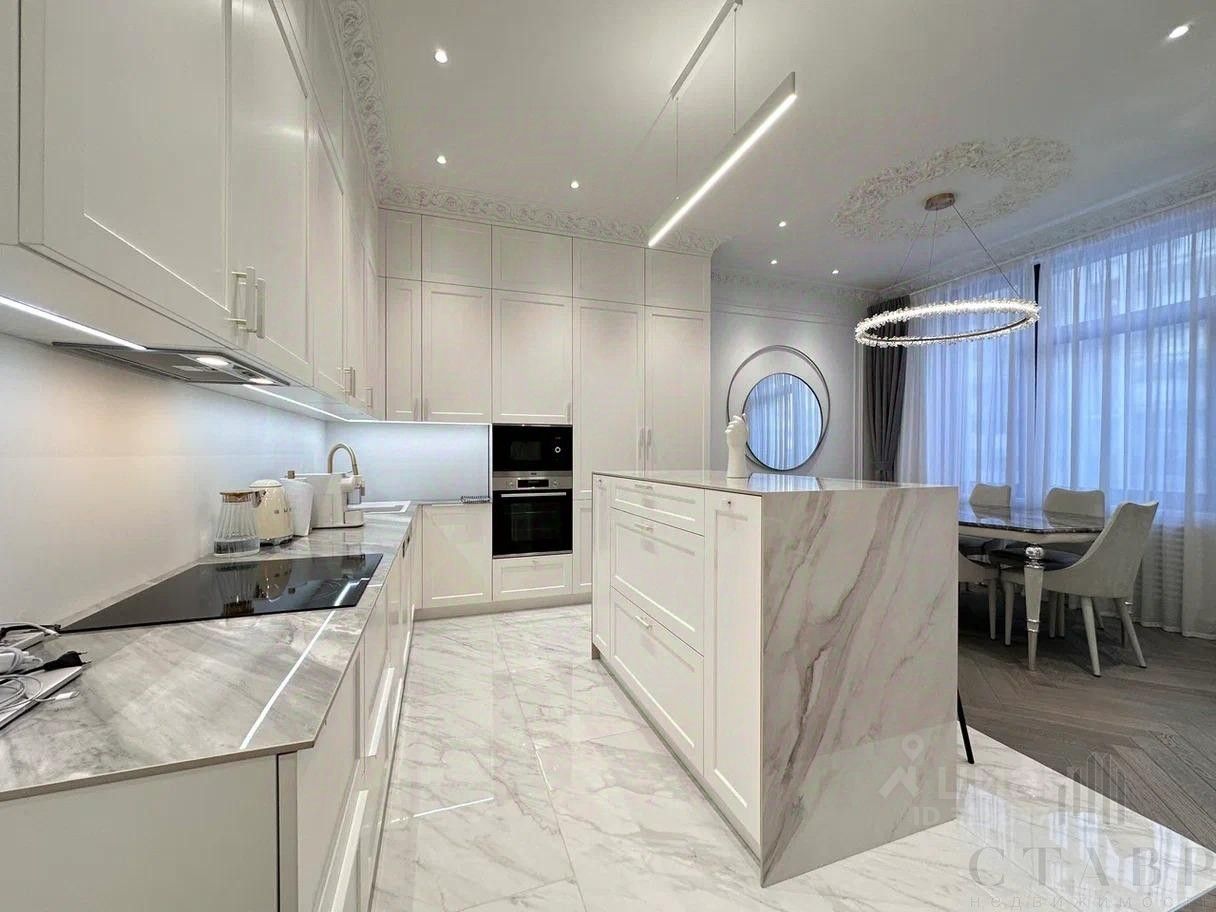 Уютная кухня-гостиная 31,7 м 2 , которая включает в себя кухонную и столовую зоны, а также зону отдыха с выходом на балкон, стена гостиной декорирована крупногабаритным керамогранитом , дизайнерские люстры , установлен декоративный камин -увлажнитель воздуха , кухня с использованием натурального камня и дерева , декорирована лепниной ручной работы , отдельный остров с использованием камня , отдельная гардеробная и постирочная . Теплые полы, кондиционер, коллектор для воды, бойлер.