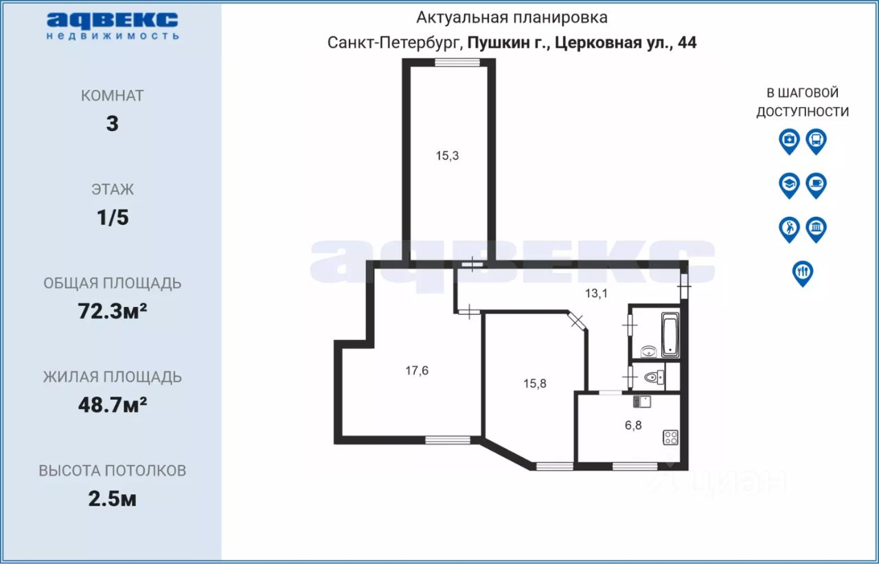 ОТЛИЧНАЯ 3-КОМНАТНАЯ КВАРТИРА В ЦЕНТРЕ г. ПУШКИНА!