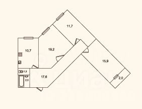 Все комнаты изолированные (19,2 + 11,7 + 15,9 кв.м.) кухня 10,7 кв.м.