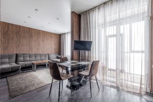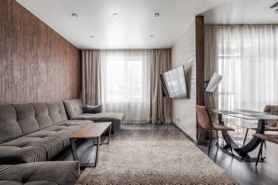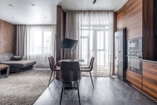 Квартира очень светлая, с панорамными окнами. Высокие потолки в 3 метра добавляют ощущение простора.