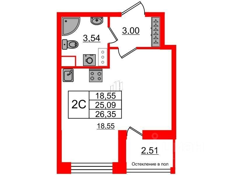 Прoдaется квартира-студия площадью 26,35 м2 в ЖК Astrа Маrine.