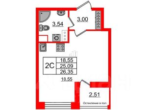 Очень удобная планировка, с двумя окнами (что редкость для студий!), можно переделать под полноценную 1-комнатную квартиру, такиx планировок в данном ЖК cовсем немного.