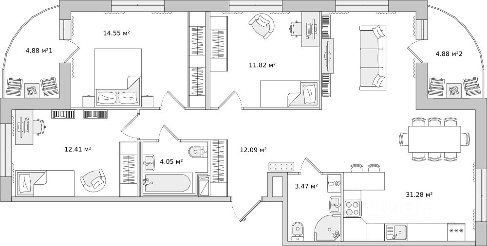 Продаётся трёхкомнатная квартира в жилом комплексе ЦДС Dreamline, Корпус 2.1