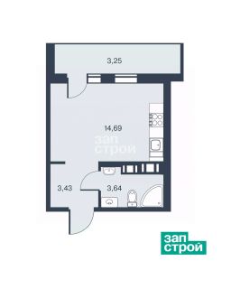О квартире: Квартира студия, общей площадью 25.01 м², кухня-гостиная - 14.69 м², прихожая с нишей под шкаф купе- 3.43 м², санузел - 3.64 м², лоджия - 3.25 м². Увеличенные оконные проёмы.