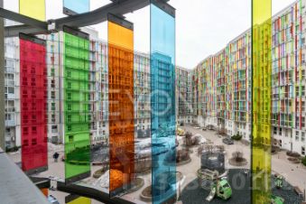Высокие потолки 3 метра и панорамные окна делают квартиру очень светлой.