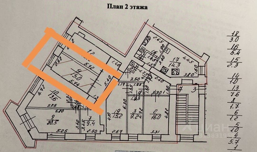 В продаже комната в пешей доступности от метро Василеостровская в восьмикомнатной квартире!