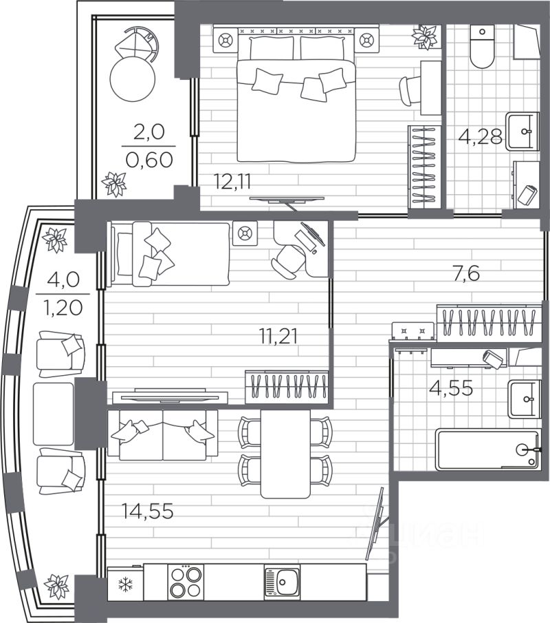 Продаётся 2-комнатная квартира в строящемся доме (Дом 6), срок сдачи: IV-кв. 2026, общей площадью 56.1 кв.м., на 2 этаже. Жилой квартал Respect - современная респектабельность.