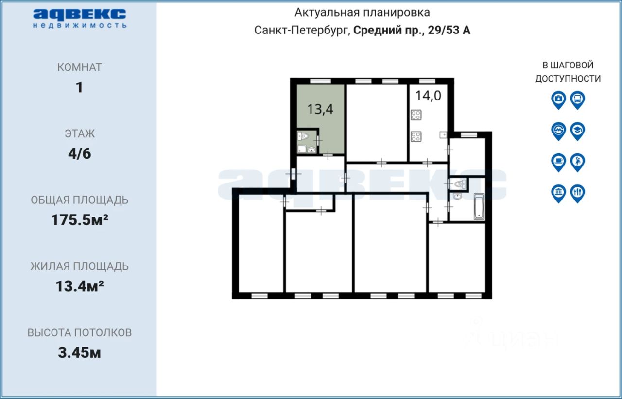 13,4 м²