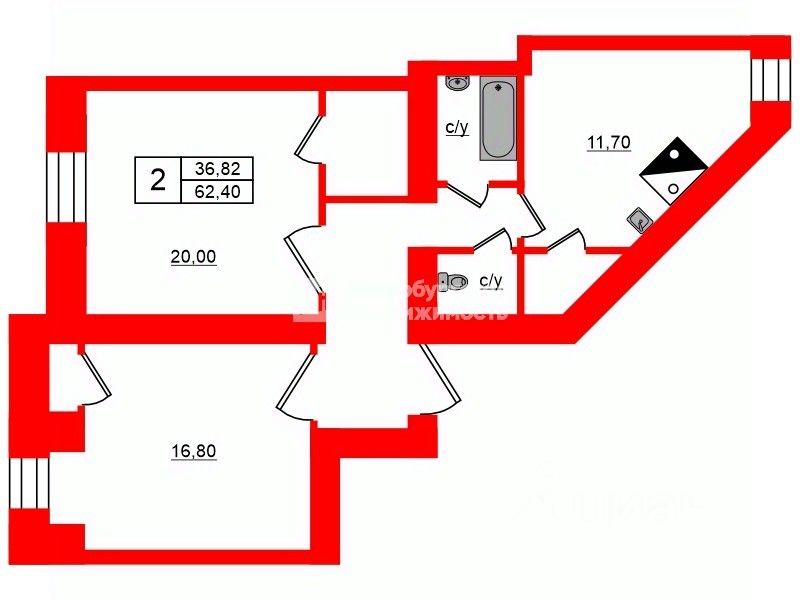 62,4 м²