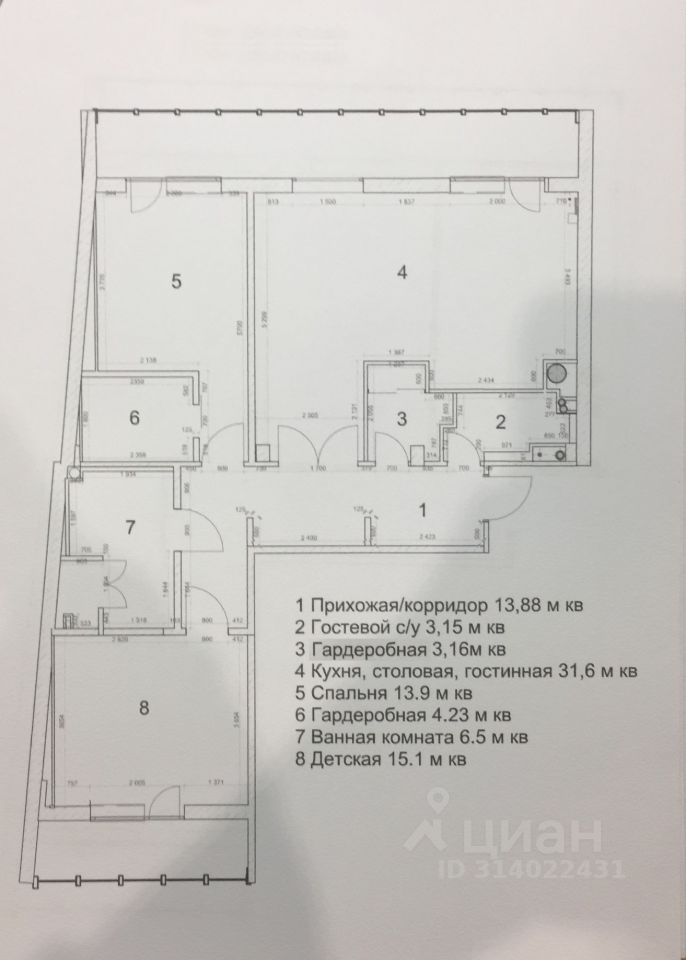плoщaдь 94 кв. м + 3 балконa (16.5кв.м
