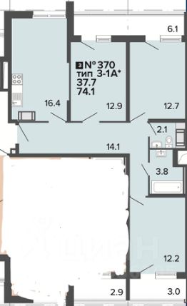 Жилые комнаты: 12,8 м² / 12,5 м² / 12,7 м²