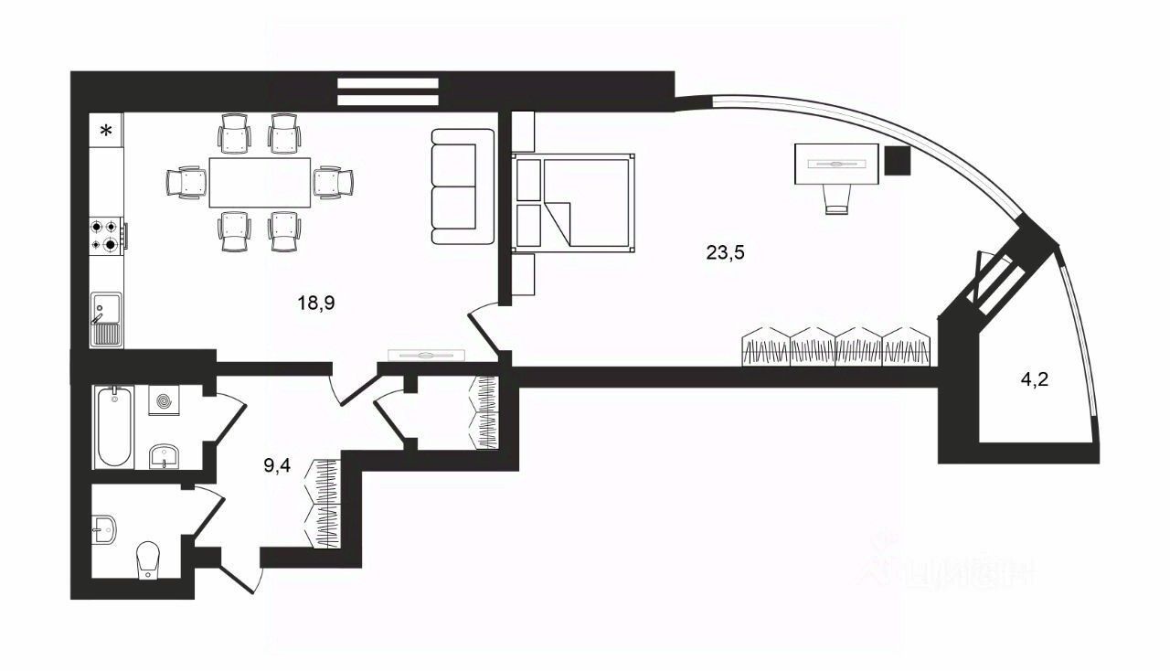 * Совмещённая кухня-гостинная: 18,9 кв. м — идеальное место для семейных ужинов и дружеских посиделок.