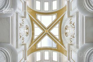 Интерьеры парадных и холлов Victory Plaza выполнены в стиле модерн. Плавные изогнутые линии, утонченность форм, приглушенный свет создают аристократичную атмосферу. В отделке использованы дорогостоящие натуральные материалы: дерево, мрамор, венецианская штукатурка на стенах. Лифты класса "люкс" выполнены в той же цветовой гамме, что и весь интерьер, со спуском в паркинг на 137 мест.