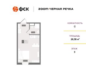 Цена со специальной скидкой в прямой продаже от застройщика — только в этом месяце. Апартамент-студия в комплексе класса бизнес-лайт Zoom Чёрная Речка на 3-м этаже. Общая площадь 26,38. Чистовая отделка.