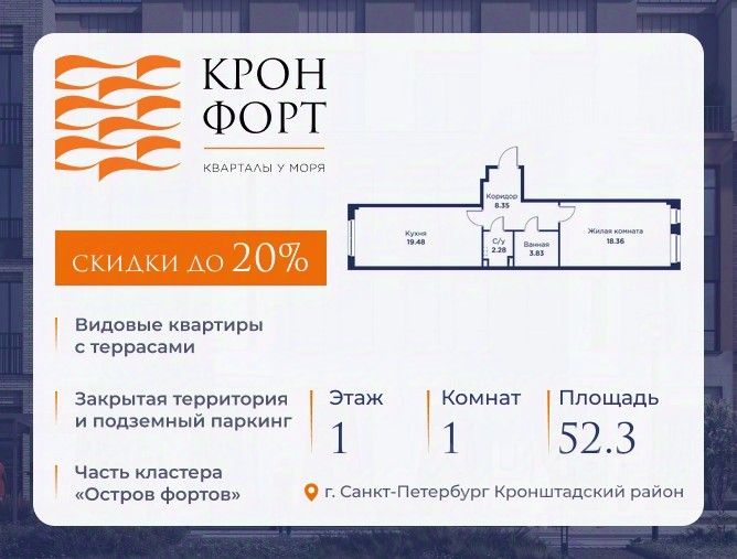 Предлагается квартира площадью 52.3 кв.м в жилом комплексе "Кронфорт. Центральный" в Санкт-Петербурге (Кронштадт). Возможна покупка с использованием льготных и специальных ипотечных программ с государственной поддержкой.