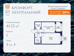 Предлагается квартира площадью 41.72 кв.м в жилом комплексе "Кронфорт. Центральный" в Санкт-Петербурге (Кронштадт). Возможна покупка с использованием льготных и специальных ипотечных программ с государственной поддержкой.