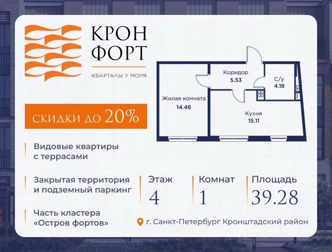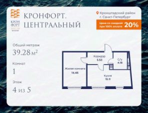 Предлагается квартира площадью 39.28 кв.м в жилом комплексе "Кронфорт. Центральный" в Санкт-Петербурге (Кронштадт). Возможна покупка с использованием льготных и специальных ипотечных программ с государственной поддержкой.