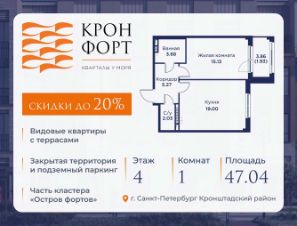 Предлагается квартира площадью 47.04 кв.м в жилом комплексе "Кронфорт. Центральный" в Санкт-Петербурге (Кронштадт). Возможна покупка с использованием льготных и специальных ипотечных программ с государственной поддержкой.