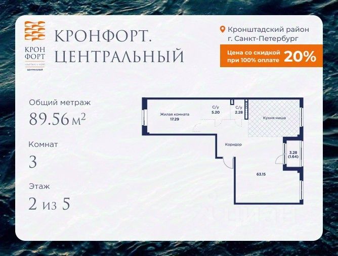 Предлагается квартира площадью 89.56 кв.м в жилом комплексе "Кронфорт. Центральный" в Санкт-Петербурге (Кронштадт). Возможна покупка с использованием льготных и специальных ипотечных программ с государственной поддержкой.