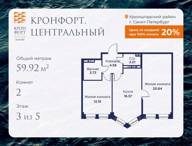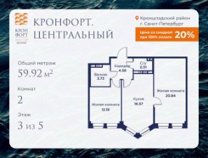 Предлагается квартира площадью 59.92 кв.м в жилом комплексе "Кронфорт. Центральный" в Санкт-Петербурге (Кронштадт). Возможна покупка с использованием льготных и специальных ипотечных программ с государственной поддержкой.