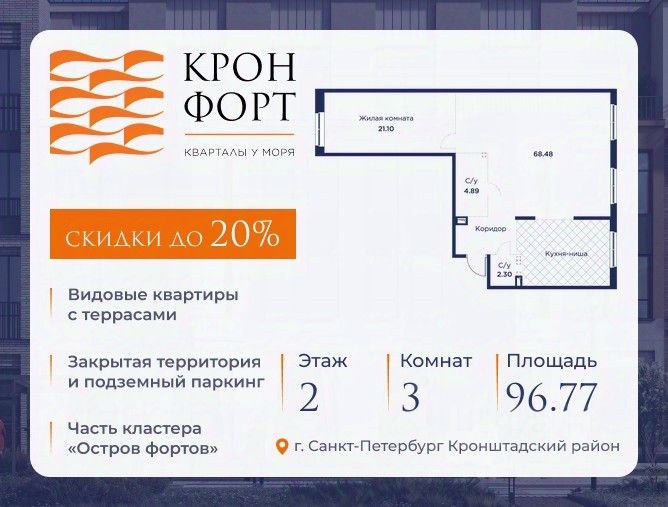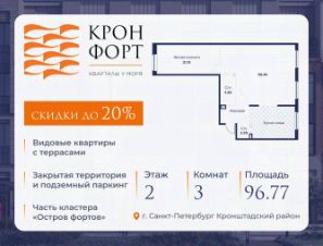 Предлагается квартира площадью 96.77 кв.м в жилом комплексе "Кронфорт. Центральный" в Санкт-Петербурге (Кронштадт). Возможна покупка с использованием льготных и специальных ипотечных программ с государственной поддержкой.