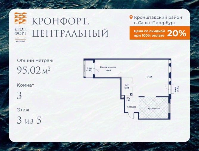 Предлагается квартира площадью 95.02 кв.м в жилом комплексе "Кронфорт. Центральный" в Санкт-Петербурге (Кронштадт). Возможна покупка с использованием льготных и специальных ипотечных программ с государственной поддержкой.
