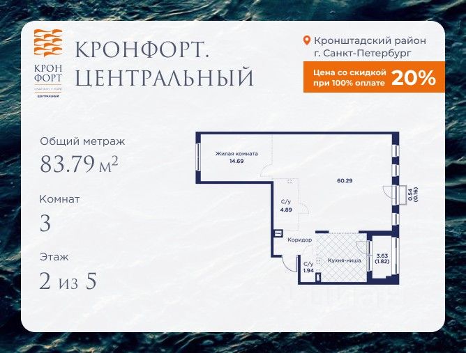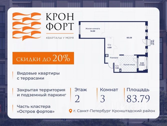Предлагается квартира площадью 83.79 кв.м в жилом комплексе "Кронфорт. Центральный" в Санкт-Петербурге (Кронштадт). Возможна покупка с использованием льготных и специальных ипотечных программ с государственной поддержкой.