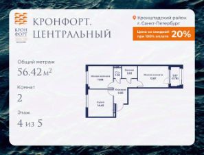 Предлагается квартира площадью 56.42 кв.м в жилом комплексе "Кронфорт. Центральный" в Санкт-Петербурге (Кронштадт). Возможна покупка с использованием льготных и специальных ипотечных программ с государственной поддержкой.